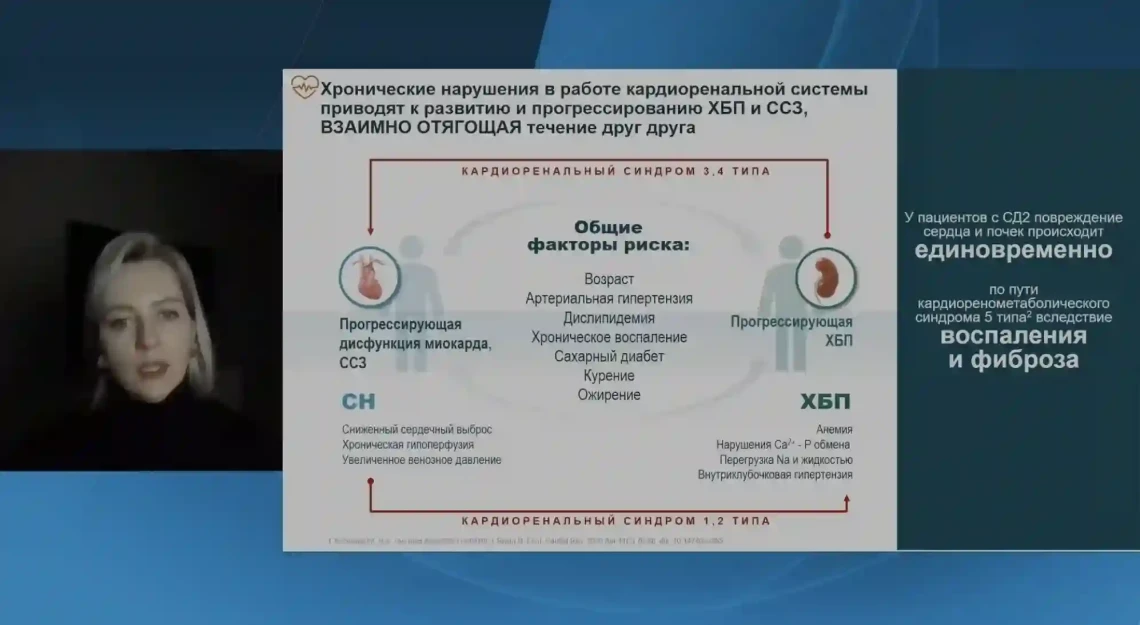 Развитие ХБП у пациентов с СД2 свидетельствует уже как минимум о второй стадии кардиоренометаболического синдрома с общими факторами патогенеза и взаимоотягощающим течением заболеваний12
